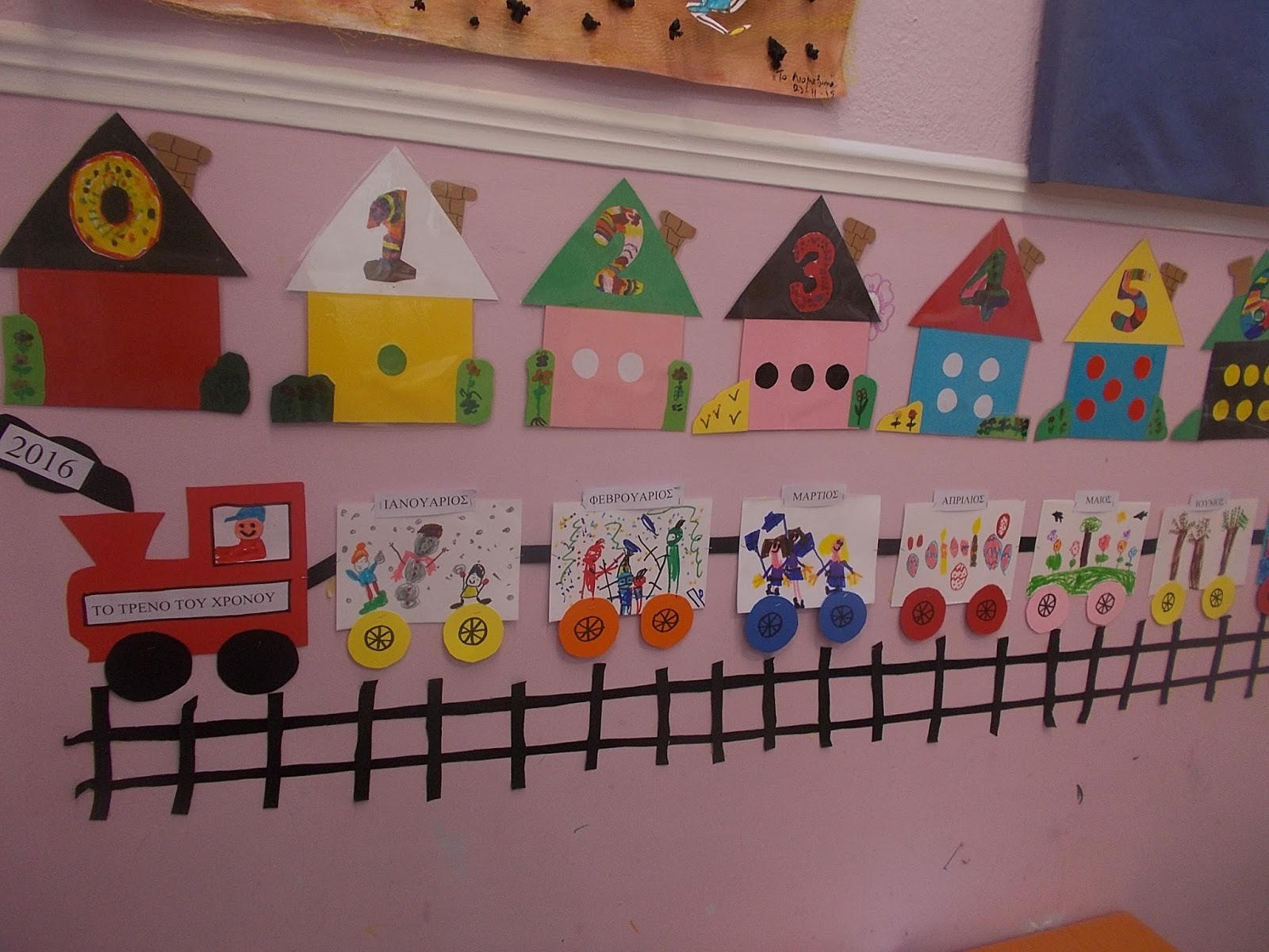 Η κυρία στην παρεούλα αφηγείται το διασκεδαστικό παραμύθι "Η κυρά -καλή και οι 12 μήνες" Έτσι μαθαίνουμε τους μήνες, τα ονόματα τους, ότι τους χαρακτηρίζει, διαλέγουμε τον αγαπημένο μας μήνα και αιτιολογούμε, βρίσκουμε σε ποιο μήνα έχουμε γεννηθεί, τους βάζουμε σε σειρά , κάνοντας το τρένο του χρόνου, με 12 βαγόνια. Ένα ζευγάρι παιδιών αναλαμβάνει να ζωγραφίσει στο βαγόνι κάτι σχετικό με το μήνα που διάλεξε. Μαθαίνουμε παροιμίες και τους τακτικούς αριθμούς.