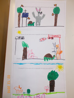Και τι δεν κάναμε με τον μύθο του Αισώπου " Ο λαγός και η χελώνα"!!! Αίνιγμα, τις έννοιες "απέναντι" και "αντίθετα", τραγούδια, κουκλοθέατρο και δραματοποίηση. Γράψαμε το ποίημα " Μια χελώνα το Χειμώνα" κυκλώσαμε το γράμμα Χ,χ και ζωγραφίσαμε αυτό που μας άρεσε. Διασκευάσαμε τον μύθο, όπου νικητής είναι η φιλία. Αποφασίσαμε όλοι μαζί, πως το σημαντικό είναι η συμμετοχή και πως η έπαρση είναι άστοχη.