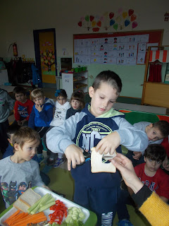 Τα παιδιά παρακολούθησαν ένα εκπαιδευτικό dvd που αφορούσε τα μέρη του σώματος ,τη σωστή στάση την ώρα του φαγητού,την ατομική υγιεινή. Είπαν πολλά τραγούδια για το σώμα,έπαιξαν "τυφλόμυγα",παντομίμα.Έκαναν διάφορες ψυχοκινητικές δραστηριότητες(αγώνες με κουτσό-κάμψεις-αναπηδήσεις). Εμπνεύστηκαν από τον μεγάλο ζωγράφο Πικάσο και δημιούργησαν μια δική τους προσωπογραφία δουλεύοντας ομαδικά. Τέλος με τρόπο διαφορετικό και ομαδικό καταπιάστηκαν και με την συμμετρία.